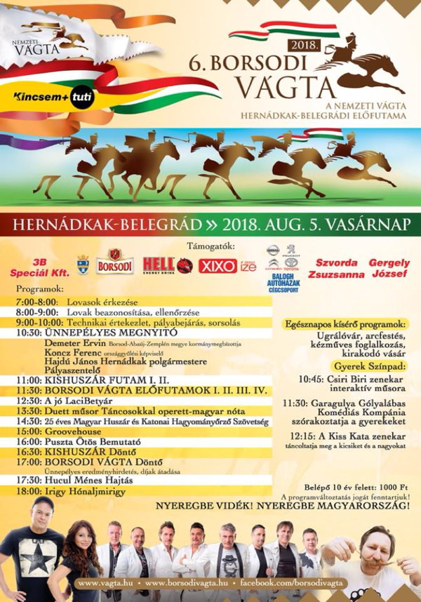 Augusztus 5-én, vasárnap kerül megrendezésre a Borsodi Vágta, a Nemzeti Vágta Hernádkak-Belegrádi Előfutama, ahol kiderül, ki lesz az a három lovas, aki a térséget képviselheti szeptemberben a Hősök Terén.